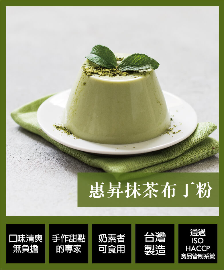 沉浸在極致綠茶風味中,我們的抹茶味布丁粉讓您輕鬆打造甜點天堂。一袋簡單、快速的解決方案,讓您在繁忙的日子也能品味到傳統日式的口感和香氣,並能輕鬆做出綿密、順滑的抹茶布丁。
