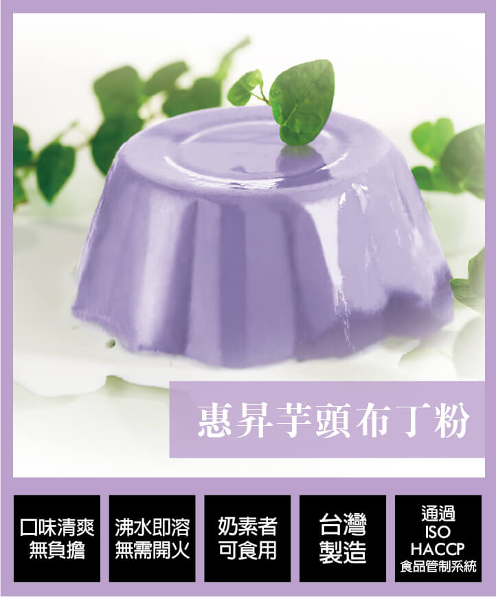 芋頭布丁粉為您帶來田園的純淨與濃厚。這款簡單好用的布丁粉讓您能在不論在家中或是運用在營業環境中,都能輕易做出口味豐富、質地順滑的芋頭布丁。