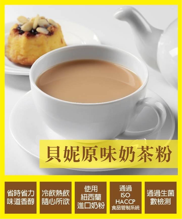 • 加入一匙三合一原味奶茶粉(20公克)於180毫升熱開水中攪拌均勻即可飲用。比例可根據個人口味自行調整。